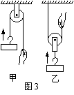用图3甲、乙两种方式匀速提升重为100N的物体,已知滑轮重20N、绳重和摩擦力不计。则( )