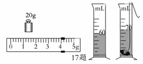在测小石块的密度的实验中,小明先用天平测小石块的质量(如图甲所示),小石的质量是 ▲ g,再用量筒测小石块的体积(如图乙所示),测小石块的密度ρ1= ▲ kg/m3;小丽做实验时,先用量筒测小石块的体积,再用天平测小石块的质量,测得的小石块的密度为ρ2,则ρ2 ▲ ρ1(“>”、“<”、“=”)。
