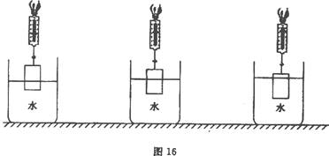 (3)在“探究浮力大小与物体在液体中的深度是否有关”实验中,改变物体在水中的深度做三次实验,如图16所示。从图中信息反映出该实验的一个错误是:_____________。