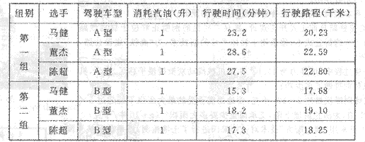 某汽车公司组织了一次新车型节油大赛,比赛分两组:第一组使用A型车(排量1.6升)。第二组使用B型车(排量2.0升)。A、B型车外观和体积相同,属于同一产品系列。