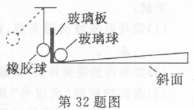 ①将单层玻璃板固定在有一定倾角的斜面上,把玻璃球靠在玻璃板的右侧,把橡胶球悬挂在支架上靠在玻璃板的左侧(如右图)。
