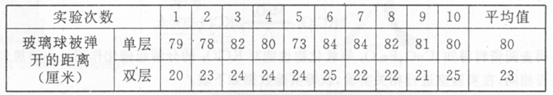 ②随意拉开橡胶球,放手后让其敲击玻璃板,玻璃球被弹开,记下玻璃球被弹出的距离。共做10次。