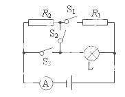 如图所示,电源电压不变,R1=6Ω,R2=4Ω.(1)当开关S1闭合,S2、S3断开时,电流表的示数为0.6A,电路总电阻是 Ω,电源电压为 V.(2)当开关全都闭合时,电流表示数为1.5A,则通过R1的电流是 A,10s内电流通过灯泡L做的功为 J.
