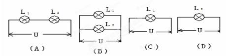 如图所示,电源电压都是220伏,灯泡L1是“220V、40W”,灯泡L2是“220V、100W”,在下列四个电路中,消耗总功率最大的是