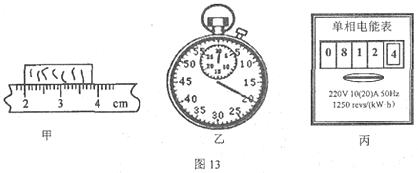 (1)如图13所示,甲中木块的长度是 cm,乙中停表的分度值是
