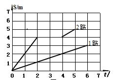 图是1路和2路两辆公共汽车做直线运动时的路程随时间变化的图像。请根据图像判断,在0~4s这段时间内,做匀速直线运动的汽车是 路车(选填“1”或“2”),在0~4s这段时间内,2路汽车的平均速度为 m/s。
