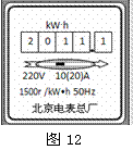 如图12所示是小明家的电能表,小明单独打开房间里的空调制冷,发现30min内电能表的铝盘转了900r,这台空调消耗的电能是 J。小明关掉空调,按下电灯的开关时,家中的保险丝烧断,其原因可能是______________________。