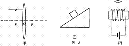 (1)根据图13甲中的入射光线画出相应的折射光线。(2分)