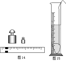 (2)将玉石放入盛有50ml水的量筒中,量筒中的水面升高到如图15所示的位置,则玉石的的密度为