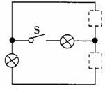 请在上图中的两个虚线框内,选填 “电源”和 “开关”的符号,并满足当开关都闭合时两灯组成并联电路。