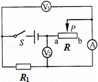 如图所示电路中,电源电压恒定,Rl为定值电阻,R为滑动变阻器.S闭合后,滑动变阻器滑片自b向a端移动,V1的示数将 _________ ,V2的示数变化量与V1的示数变化量的比值将 _________ (选填:“变大”、“变小”或“不变”).