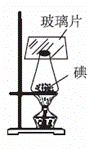 如图所示,把少量碘放入锥形瓶中,瓶口加盖玻璃片。微微加热,瓶中充满紫色的碘蒸气,此过程碘发生的物态变化是 。停止加热,碘蒸气凝华,看到的现象是 。