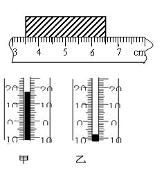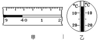 如图所示,该刻度尺的分度值是_____ cm,物体的长度是 cm , 如图所示温度计读数甲___________ 乙__________