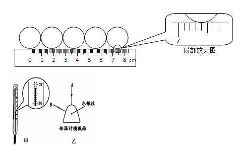 (2)某同学采用如图所示的方法测定硬币的直径,测得4个硬币的直径是: cm