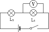 如右图所示,将两只灯泡串联后通过开关接入电路中。电源由两节干电池串联而成,闭合开关后电压表的示数为1.2V,通过L2的电流是0、2A,求R1、R2的阻值是多少?