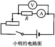 小明家新买了一条标有“220V,50W”的电热毯,他想用电流表和电比表测量电热毯的电阻值,于是连接了下图所示的电路,其中R为待测电热毯的电阻,电源两端的电压为6V,滑动变阻器的最大阻值为20欧。但是,小明在测量过程中发现,无论怎样调整滑动变阻器,电表的示数都几乎没有变化,且查得各元件完好,电路连接无误。请分析产产生这一现象的原因。如果仍然使用这些器材,怎样连接电路才能有效地改变电热毯两端的电压?在小明电路图的右侧画出你的电路图。