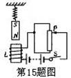 如图所示,乙是电磁铁,在乙正上方用弹簧悬挂一条形磁铁,设电源电压不变,闭合电键S待电磁铁稳定后,当滑动变阻器R的滑片p由上向下缓缓地滑动过程中,弹簧的长度将 ( ).