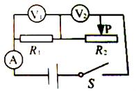 在图 (a)所示的电路中,电源电压保持不变, R1为定值电阻, R2为滑动变阻器。闭合电健S,调节滑动变阻器,将滑动变阻器的滑动触头P从最左端滑到最右端,两电压表的示数随电路中电流变化的完整过程困线如图(b)所示。则(1)判断图线“甲”或“乙”)是电压表V2示数随电流变化的图线。(2)滑动变阻器的最大阻值为多少欧?(3)如果将定值电阻R1 阻值换为20欧,同样将滑动变阻器的滑动触头P从最左端滑到最右端。请在图(c)中画出两电压表的示数随电路中电流变化的完整过程图线。