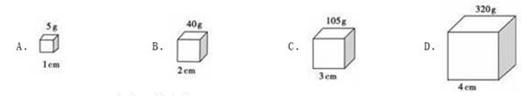 现有用同一种材料做成的四个正方体,其中有一个是空心的,它们的边长和质量如图所示,空心的是