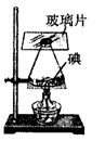 如图所示,把少量碘放入锥形瓶中,瓶口加盖玻璃片。微微加热,瓶中充满紫色的碘 蒸气,此过程碘发生的物态变化是____________。停止加热,碘蒸气凝华,看到的现象是________________________。