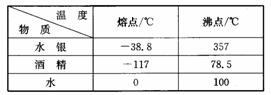 根据国务院规定,办公场所的空调在夏天温度应设置为不低于__ _____(选填“20℃”或“26℃”).冬天,用手握着温度计底部测量气温,可能会使测量结果偏_______(填“高”、“不影响”或“低”).几种常见物质的熔点和沸点如下表所示,在测量沸水的温度,可选择_______(填“酒精”或“水银”)温度计.