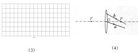 (4) 图中,a、b是从点光源S发出的、经透镜折射后的两条光线,在图中完成光路并标出点光源S的位置.