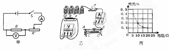 小张为了研究“当电阻R两端的电压不变时,通过R的电流与其电阻的关 系”,设计了如图甲所示的电路,并选用了若干只不同阻值的定值电阻。