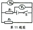 在如图所示电路中,当闭合开关后,两个电压表指针偏转相同,则电阻Rl和R2两端的电压之比为( )