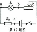 如图所示的电路中,R0是定值电阻,L是小灯泡,R是滑动变阻器,闭合开关S,发现无论怎样移动滑动变阻器的滑片,小灯泡都不发光。当电压表接ab两点时,电压表无示数;接ac两点时,电压表示数较大;用一只电流表接在c点时,电流表无示数。若电路只有一处故障,则产生上述现象的原因可能是( )