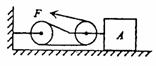 如图所示,物体重2000N,当它沿水平地面匀速运动时所受的阻力为240N,若不计滑轮的重与摩擦,使物体以1m/s的速度匀速前进,经过10s时间,拉力的大小F = ▲ N,拉力做的功是 ▲ J,拉力的功率是 ▲ W。