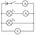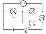 两盏灯均发光,甲、乙、丙是三个电表,请填出甲、乙、丙分别是电压表还是电流表?并写出相对应情况下