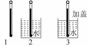 如图所示,室内恒温,分别将三个相同的温度计放在空气中、水杯中、加盖的水杯中,水杯导热性良好,示数稳定后,请排列