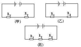 有R1,R2和R3三只电阻,已知R1>R2>R3,连接成如图所示三个电路,电源电压相等。其中R1两端电压最大的是