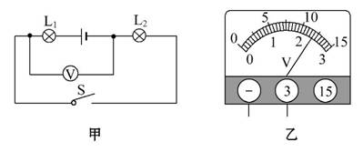 如图甲所示电路,当开关S闭合后,电灯L1和L2 联,电压表测的是