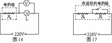 (2) 为了使改造后的电热毯 (如图 17 所示)在低温挡位时的总发热功率为原电热毯额定功率的五分之三,小明需要一个阻值多大的电阻丝?(保留一位小数)