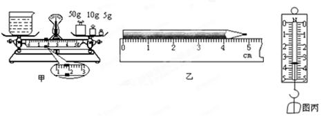 如图甲中所示天平的读数是 g;如图乙中铅笔的长度是 cm;如图丙中弹簧测力计的示数是__________N。