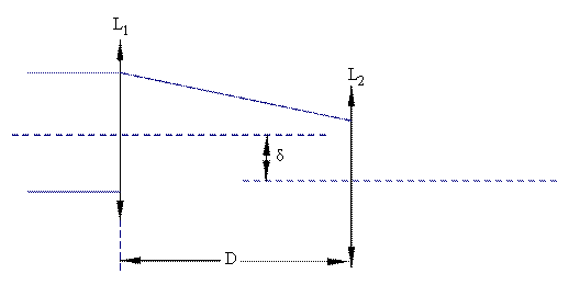 平行放置,两透镜的光轴略微错开,已知:两透镜相距为