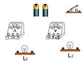 如图,试设计一个电路,两个灯泡串联,用一个电流表测量通过其中一个灯泡的电流,用电压表测它两端的电压,并在右侧的方框内画出相应的电路图。