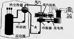 在常规化石能源非常紧缺的今天,核能受到越来越高度的重视,如今美国电力的21%是来自核电.核电站的大体组成如图所示,核材料在原子反应堆中发生核反应产生大量的热能,冷却剂将这些热能带到热交换器将水变成水蒸汽,水蒸气推动蒸汽轮机带动发电机发电,最终实现了核能到电能的转换.