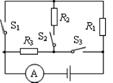 如图所示电路,电源两端电压为6V且保持不变,当只闭合开关S1时,电流表的示数为0.5A;只闭合开关S2时,电流表的示数为0.2A;只闭合S3时,电流表的示数为0.6A。下列说法不正确的是
