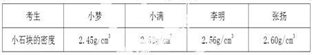 小梦参加了5月份的实验操作考试。下表中记录的是小梦与其他三位同学测出的小石块密度(注:经查密度表可知,石块的密度为2.50g/cm3)。下列说法正确的是( )